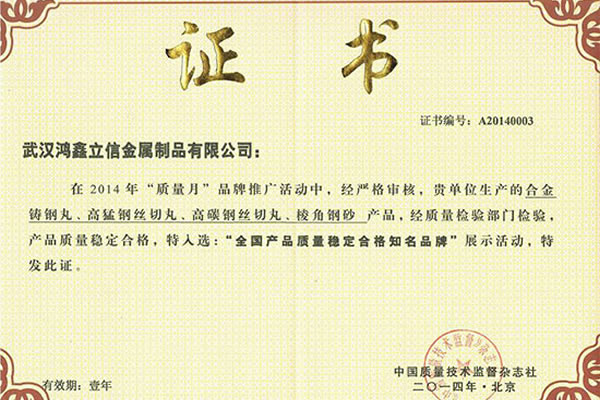 公司所有產(chǎn)品均通過ISO9001 **質(zhì)量認證,2014年更獲得了第三屆中國金屬磨料行業(yè)具有影響力品牌-華尊獎